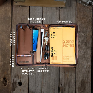 There's nothing quite like a handmade leather portfolio or padfolio. Allegory's padfolios are handcrafted in Chicago from the highest quality leather and guaranteed for life. And it's not just the leather, every inch of these portfolios are built to last. They also blend some tech storage features with classic pen and paper to create the perfect tool for the modern professional.