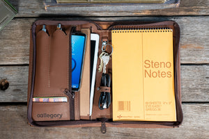 There's nothing quite like a handmade leather portfolio or padfolio. Allegory's padfolios are handcrafted in Chicago from the highest quality leather and guaranteed for life. And it's not just the leather, every inch of these portfolios are built to last. They also blend some tech storage features with classic pen and paper to create the perfect tool for the modern professional.